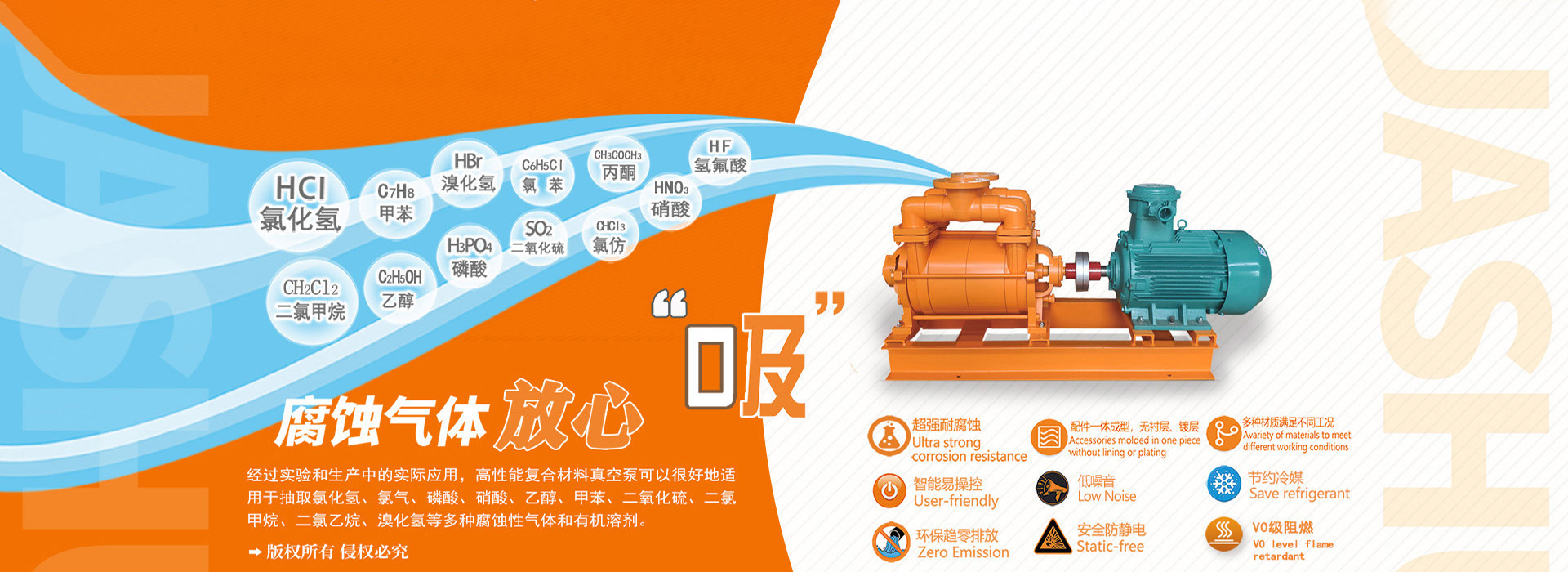 淄博華舜耐腐蝕真空泵有限公司主要生產(chǎn)各種型號和規(guī)格的水噴射泵耐酸泵等產(chǎn)品,價格優(yōu)惠,廠家直銷,原理簡單,是一家集科研開發(fā)、設(shè)計咨詢、生產(chǎn)、銷售、服務(wù)于一體,利用新型高性能復(fù)合材料,專業(yè)生產(chǎn)耐腐蝕液環(huán)真空泵的國家高新技術(shù)企業(yè), 坐落于“中國泵業(yè)名城”---山東省淄博市博山區(qū),公司通過了ISO9001質(zhì)量體系認(rèn)證。公司獨立研發(fā)的具有多項自主知識產(chǎn)權(quán)的專利產(chǎn)品-耐腐蝕系列水環(huán)式真空泵,通過了省級科技成果鑒定,處于“國際先進(jìn)水平”。 產(chǎn)品過流部件采用三大系列高性能復(fù)合材料(HS-V130、HS-V110、HS-V80)一體成型,耐腐蝕范圍廣、無襯層不脫落、節(jié)能效率高、運行可靠、環(huán)保節(jié)水、 體積小、重量輕、使用壽命長等特點。